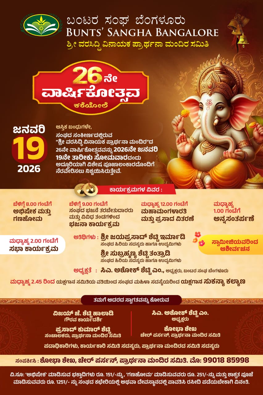 Bunts Sangha Bangalore – Youth Wing Committee is one of the active sub-committees within Bunts Sangha Bangalore. 2018-2020 Youth Wing Committee was formed on 24th Aug 2018 and is currently chaired by Dr. Umanath Shetty Y with Ajith Shetty Korangrapady as Convenor. Youth Wing comprises of young bunts from all over Bangalore within the age group of 18-35 years.
