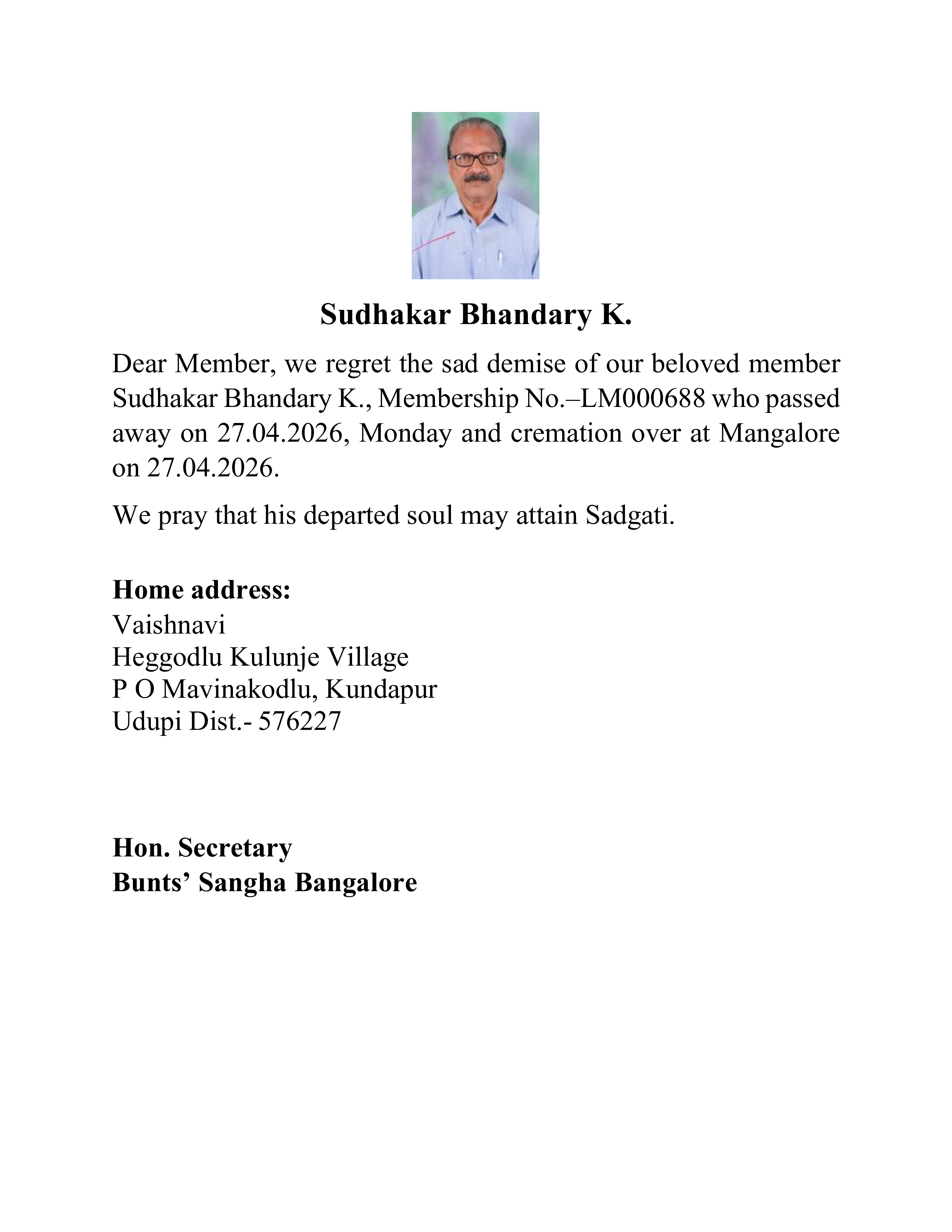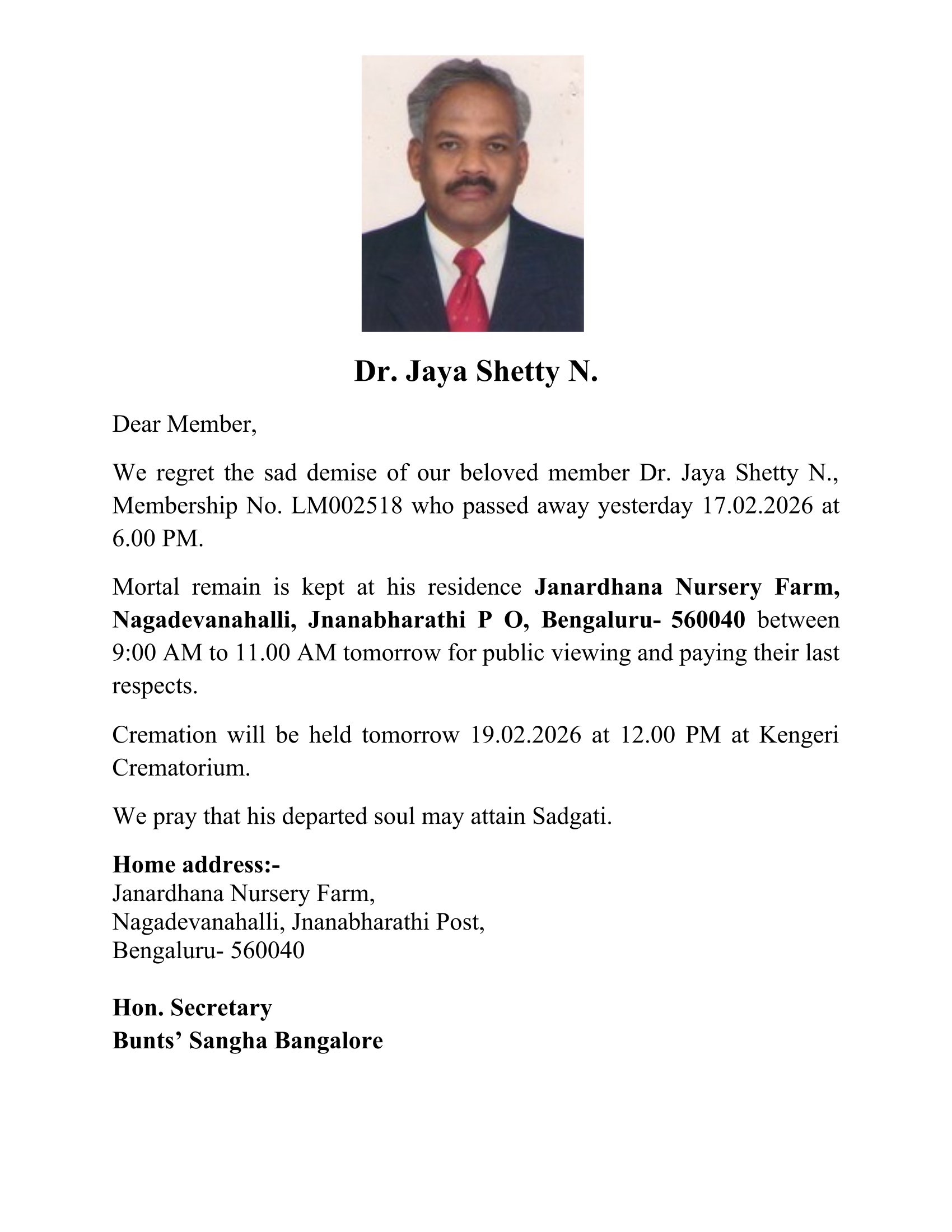 Bunts Sangha Bangalore – Youth Wing Committee page updated